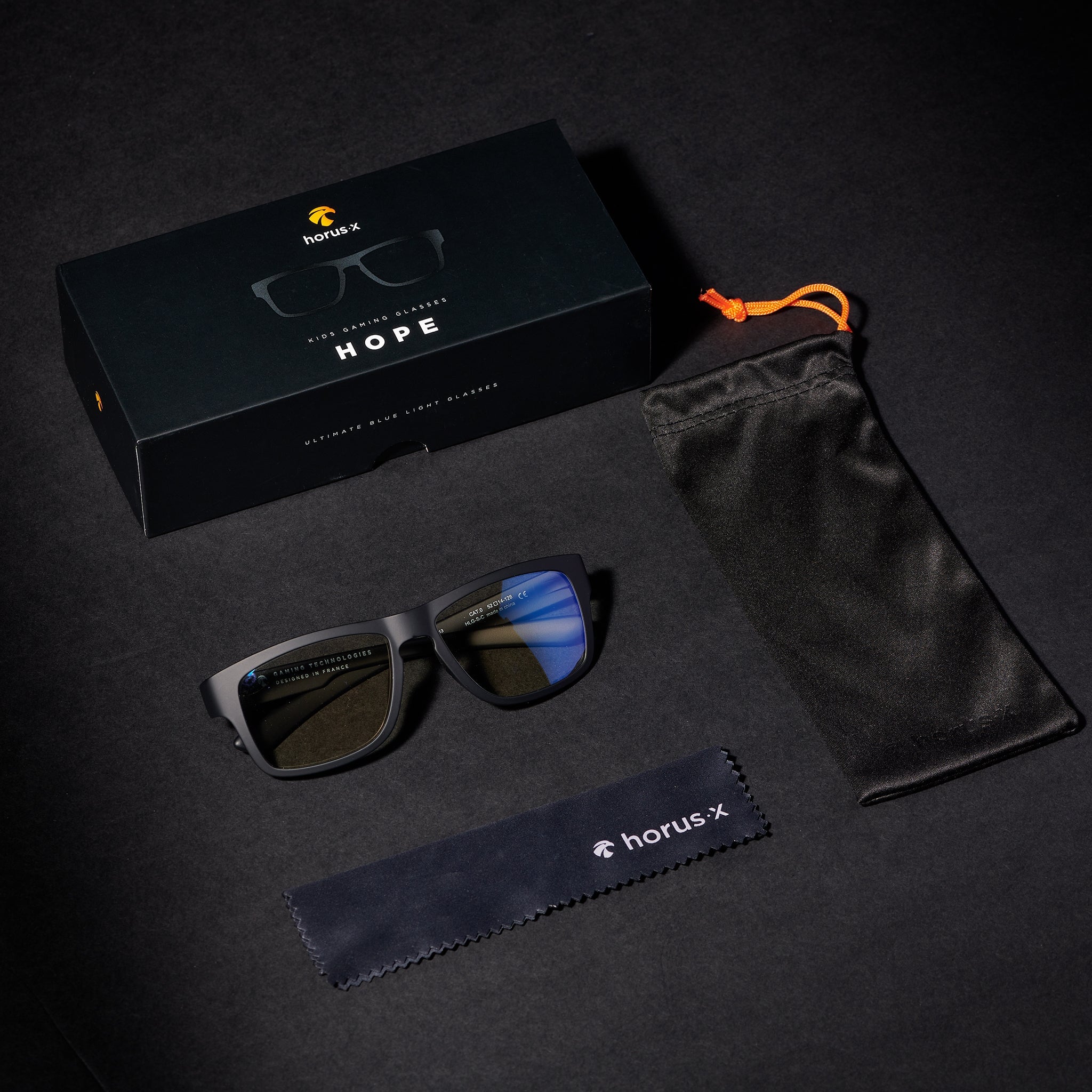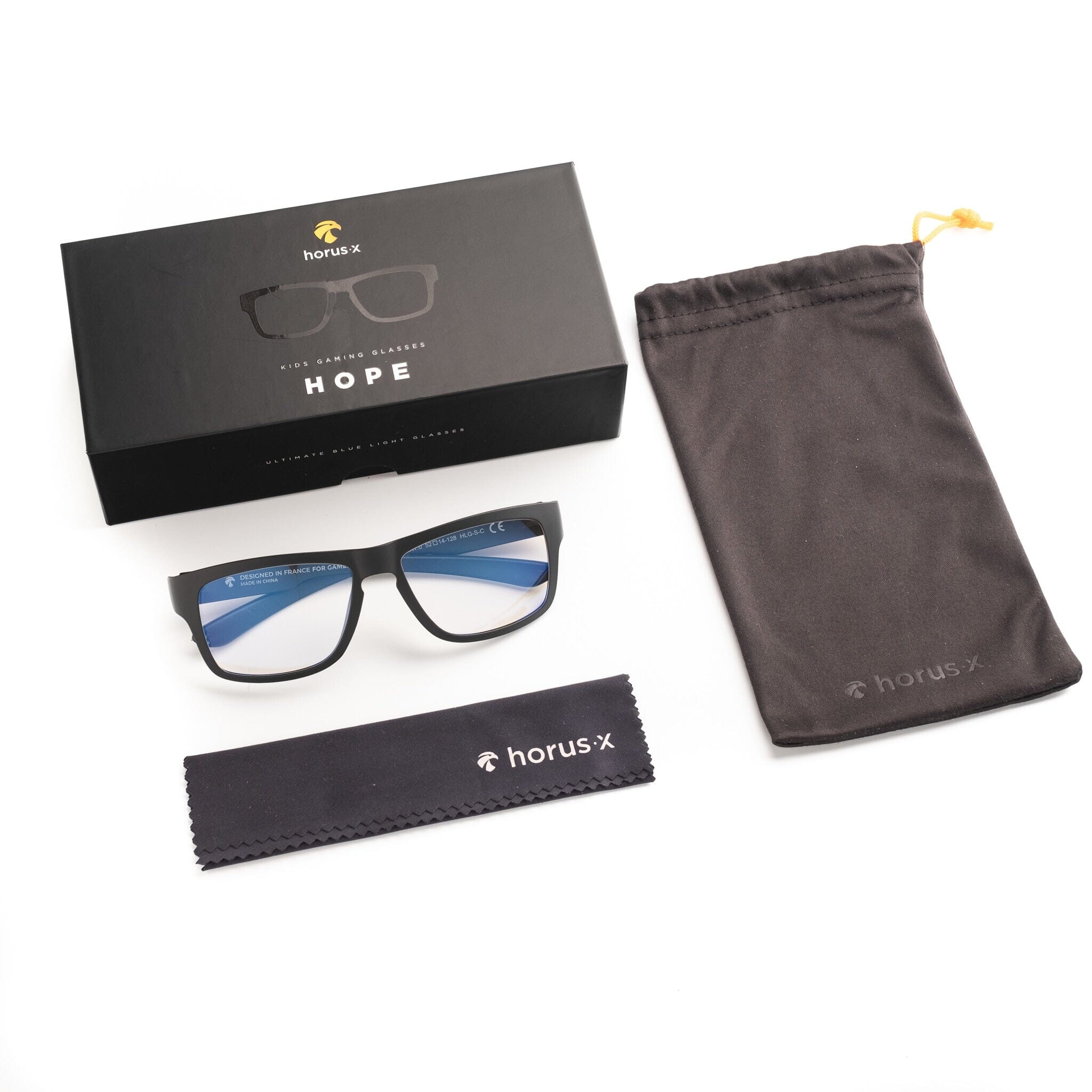 • 1 pair of HOPE kids blue light glasses for gaming (amber or clear lenses)