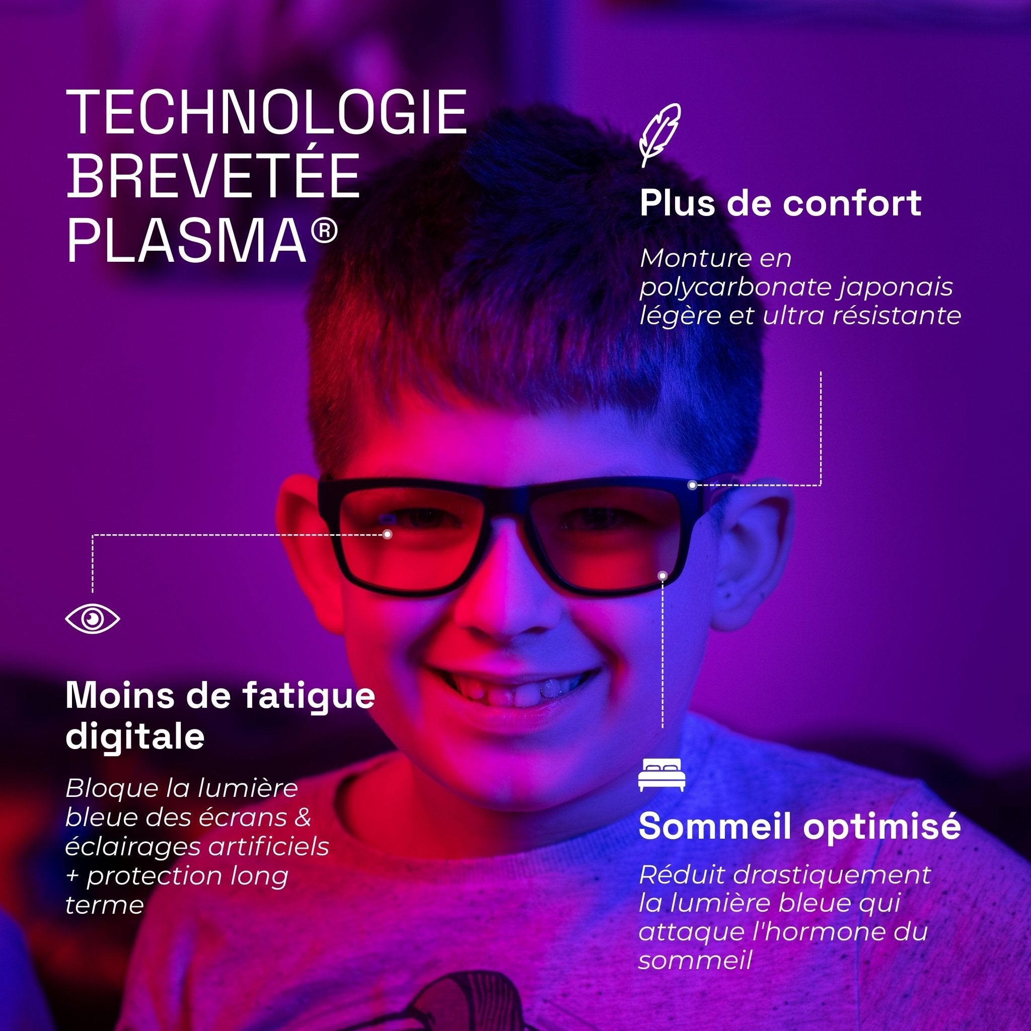 Our blue light glasses for kids are built for the gaming generation. Specifically designed to fit smaller, thinner faces, these glasses feature our advanced Ghost and Plasma technology for powerful, long-term screen protection.